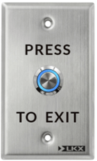 Pulsador de salida, Panel de acero inoxidable (0.9mm), Botón metálico iluminado, 3A@36VDC Max, NO/NC/COM, Impresión Laser, 115*70mm.